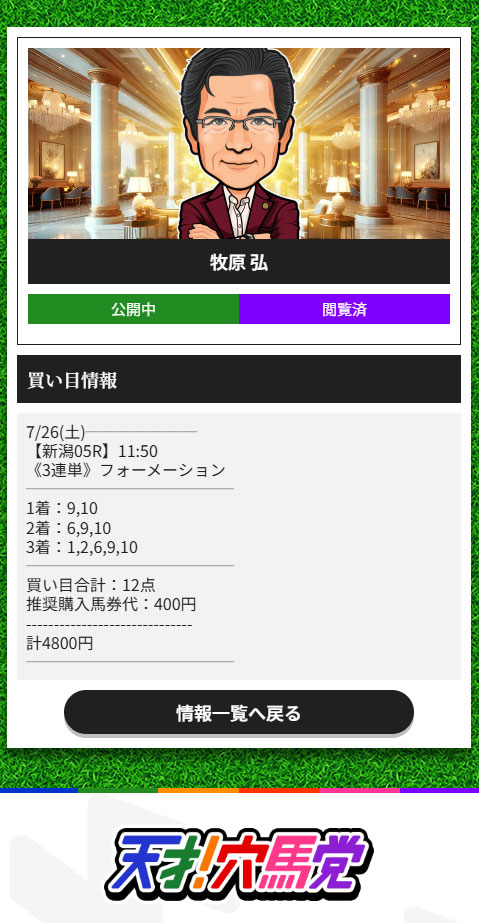 今回の検証で【的中率・回収率】弾きやすいレース数(4鞍)でしたのでサポートに推奨された馬券師有料情報を購入。