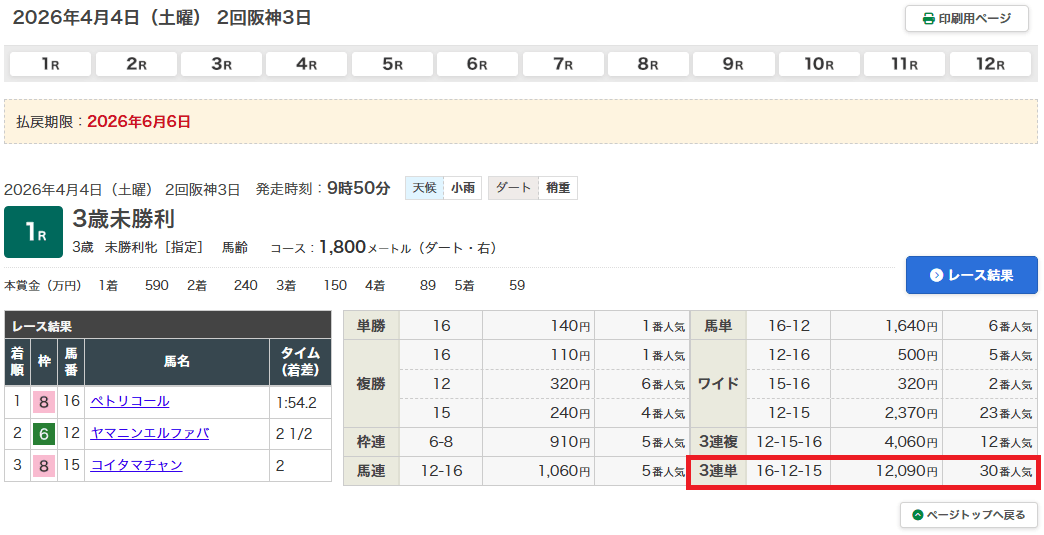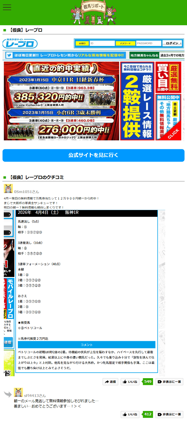 今回届いた口コミは4月一発目の無料予想となる4日(土)無料情報。