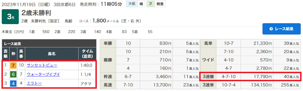 1.2番人気馬が飛んで美味しい配当だっただけに残念です。