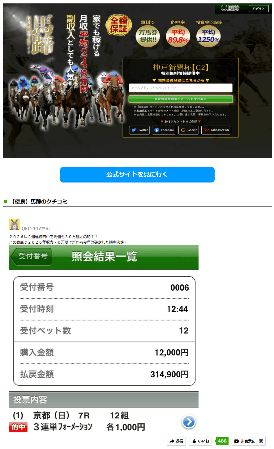 多くの口コミが届く=継続して利用される当たる競馬予想サイト!