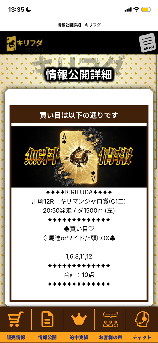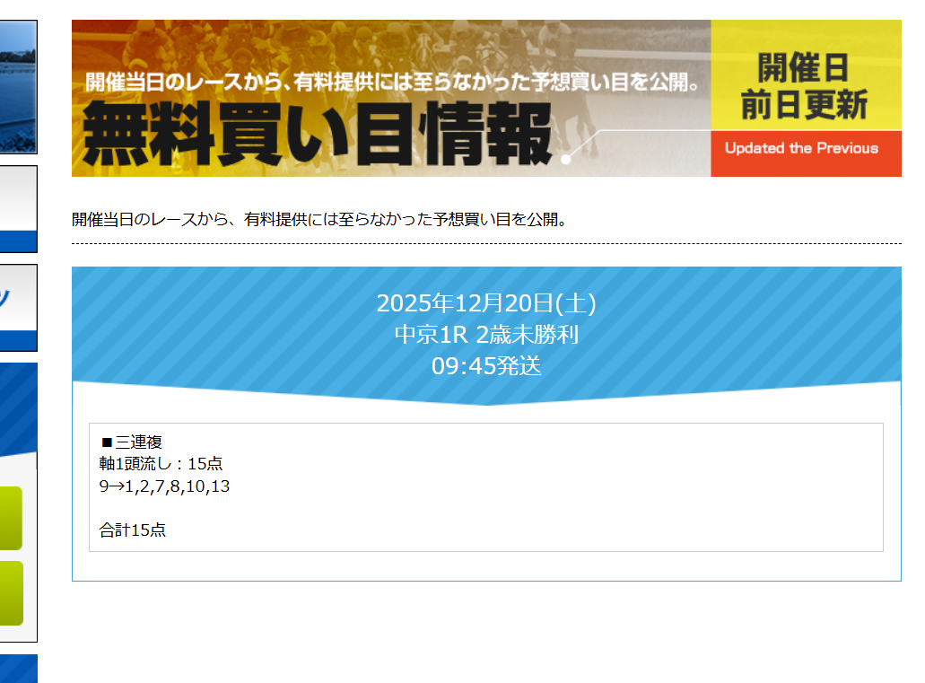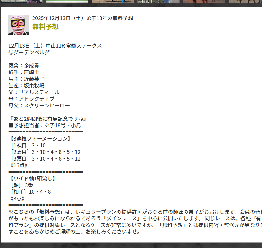 無料予想の質が高い。 予想も上手い