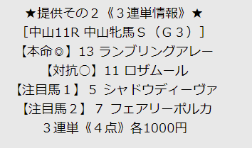 ちなみに中山牝馬は147万9500円の払い戻しです!!しかも3連単4点!!