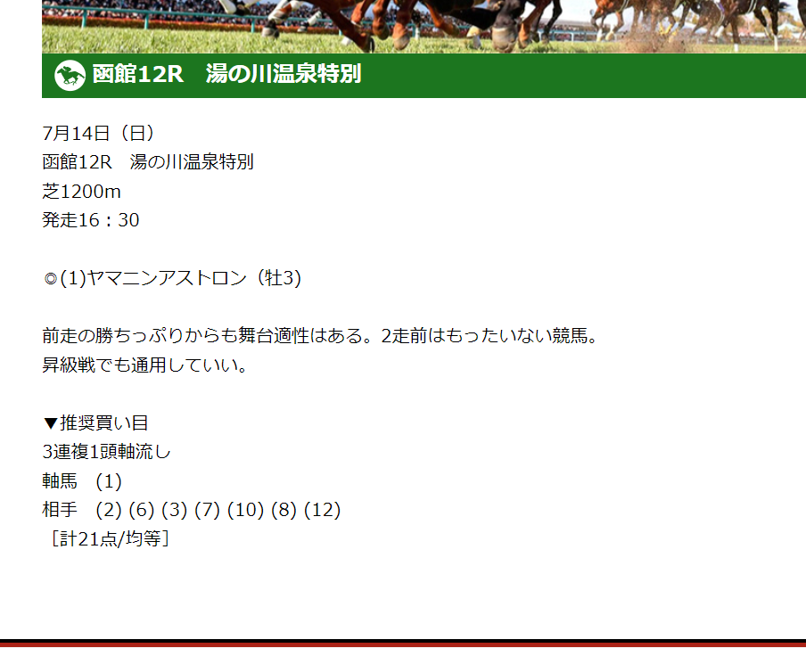 この無料情報で函館連敗しました