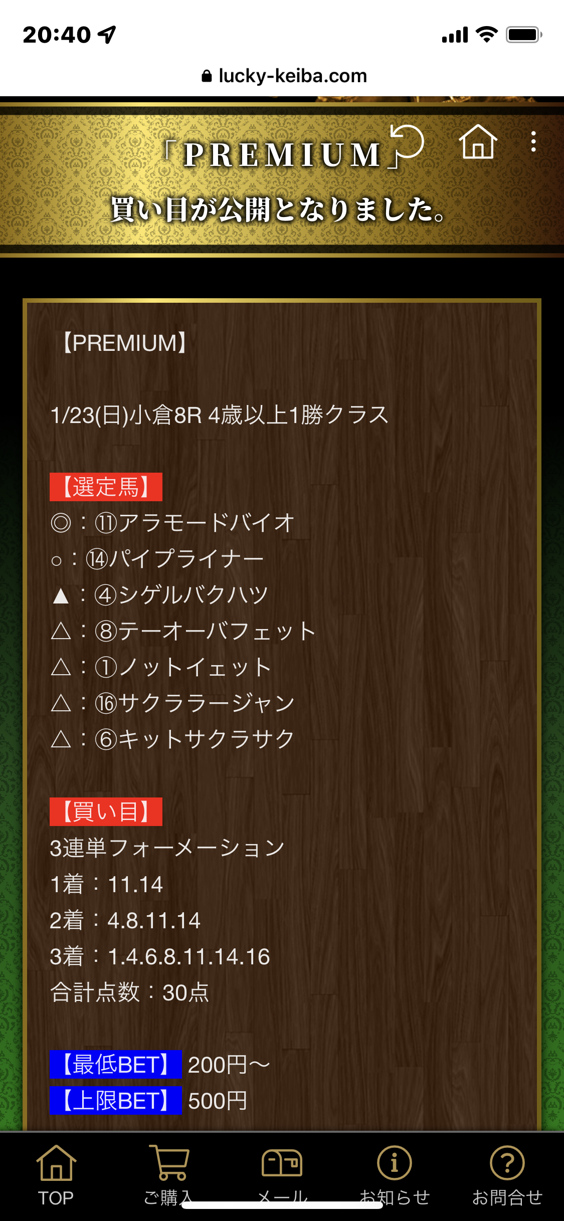 最近相性よくて2週連続的中で40万稼がせてもらいましたよ。