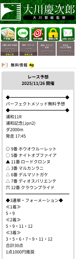 私も参加していて浦和記念的中貰えましたた。 ここは平日、毎日地方競馬買い目(無料)出しているので平日のお小遣い稼ぎに愛用させてもらってますよ。