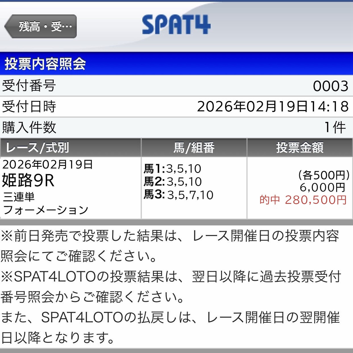 小倉の高配当爆誕レース的中に満足してます。