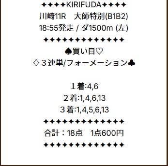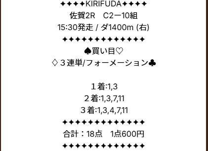 1068.7倍地方競馬で当たりました!これが買い目画像です