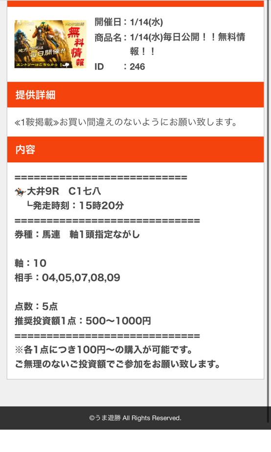 うま遊勝さんの予想で、地方競馬の極意を堪能しました。 9人気が激走してテンション久々上がり万馬券まで的中貰えて 払戻し金、39万9100円は嬉しすぎます、2026年初の10万突破的中になりました。 仕事の合間見てまた利用しようと思います。