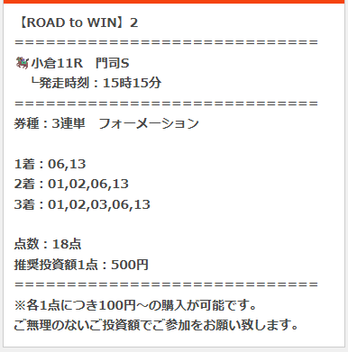 安いし負けてもいいや感覚でやったらスタートダッシュどころか上半期分の収支をたった1レースで稼がせてもらいました。