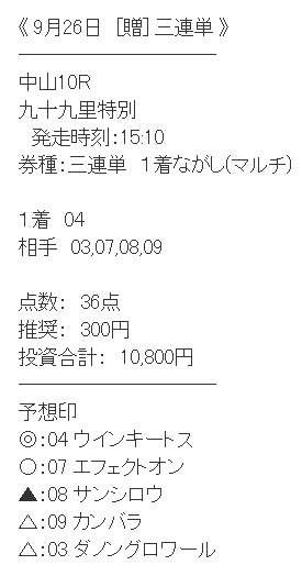 万馬券! とはならなかったけどしっかり的中しました! しかも無料情報です! ちょいプラで地味に嬉しいですね~