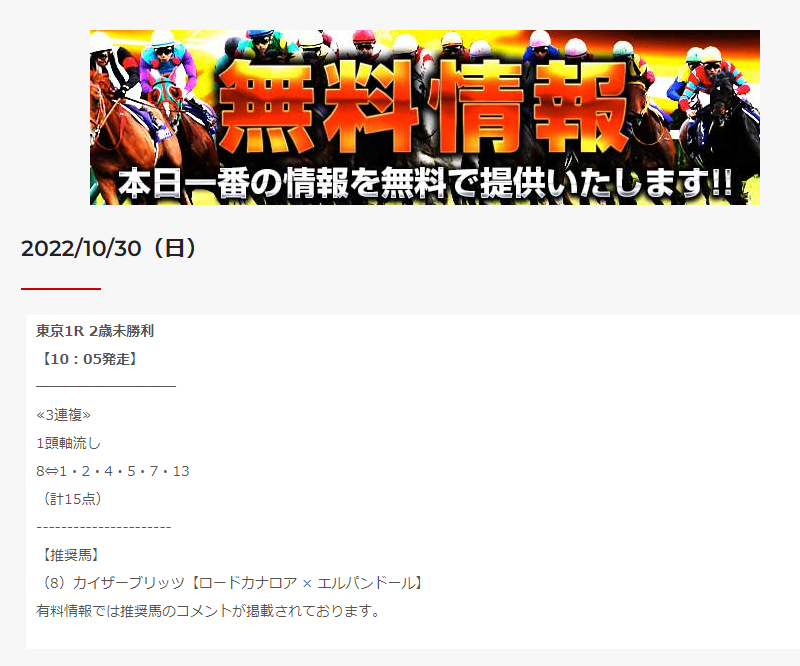 実際には提供してない予想を、あたかも予想していたかのようにサイトトップに張り出します。 皆様、騙されないでください。